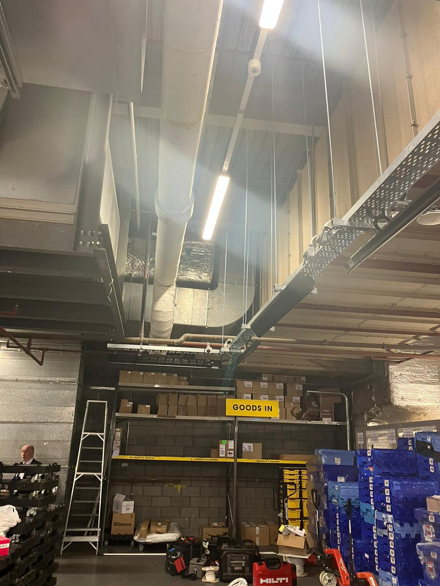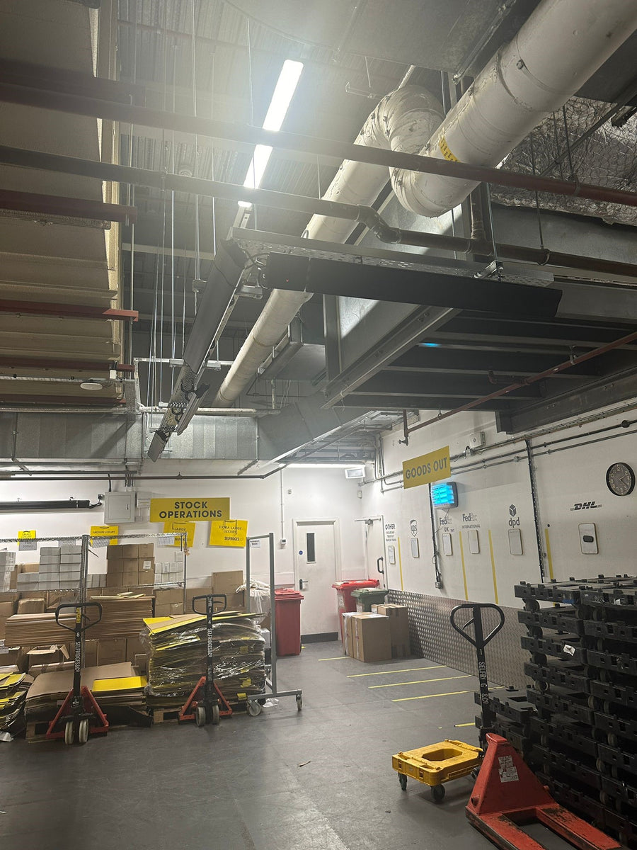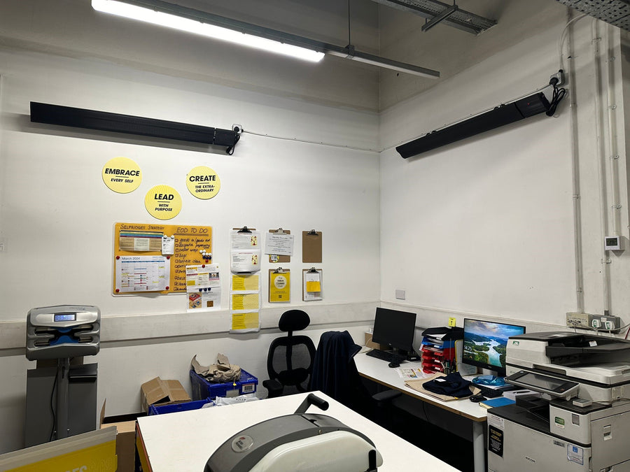 IHS specified eight 2.4kW far infrared linear bar heaters, strategically positioned to deliver direct warmth to staff working near loading bays and adjacent office areas. The heaters were controlled via a smart thermostat, allowing precise temperature management.