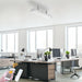 The slim, powder-coated white aluminium body blends seamlessly into modern or light-coloured interiors. Durable, discreet and versatile, it can be ceiling or wall mounted in conservatories, garages, studios, or covered restaurant terraces. Integrated WiFi and thermostat functions allow you to manage comfort levels with ease, removing the need for additional controllers.
